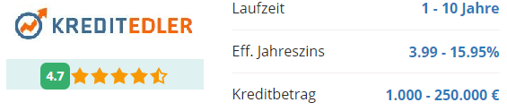 Ein Vergleich über KreditEdler zeigt Ihnen die Konditionen führender Banken in einer übersichtlichen Darstellung. So sichern Sie sich günstige Zinsen und sparen über die gesamte Laufzeit.